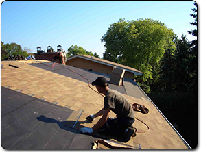 Nesting- Installing a second layer of shingles aligning courses with the original roof to avoid shingle cupping.